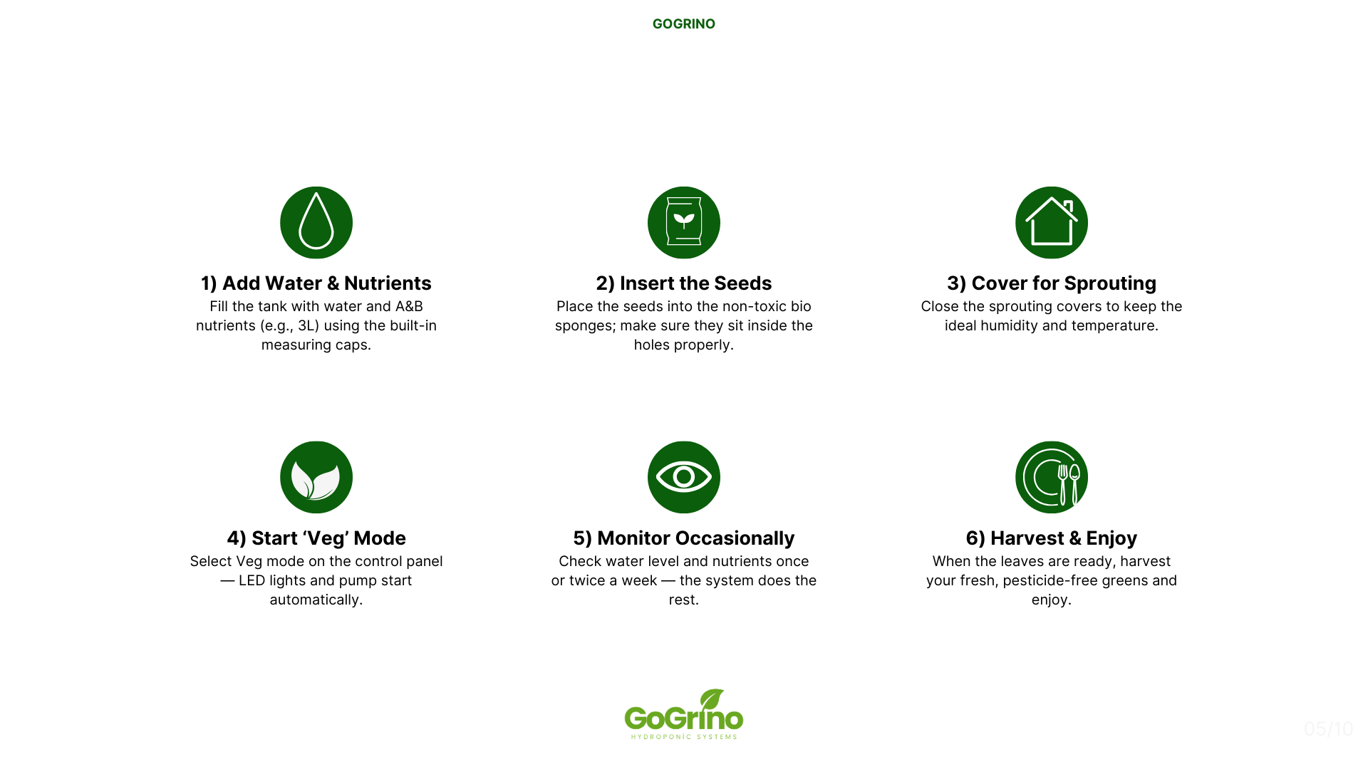 At GoGrino, we believe that growing fresh, healthy food should be simple, sustainable, and enjoyable — no matter where you live. Our vision is to bring the joy of gardening indoors, helping people reconnect with nature while embracing smart, eco-friendly solutions.
